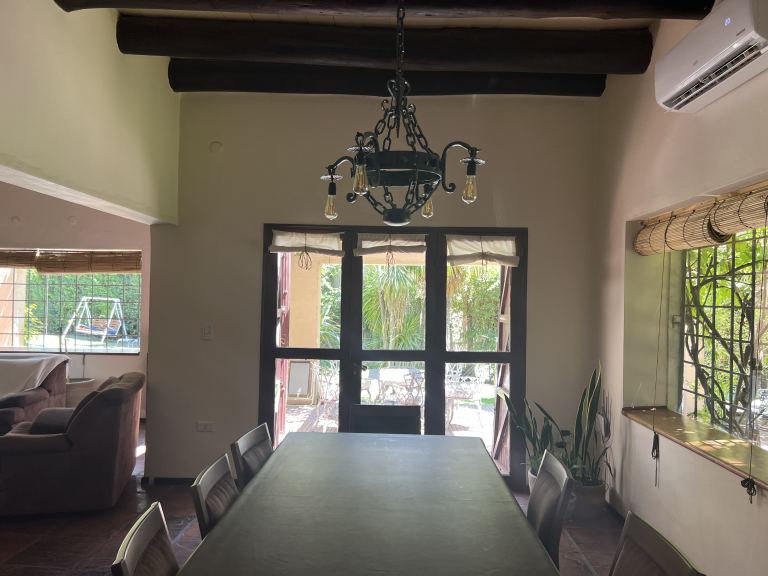 Living/ Comedor con hogar a leña.